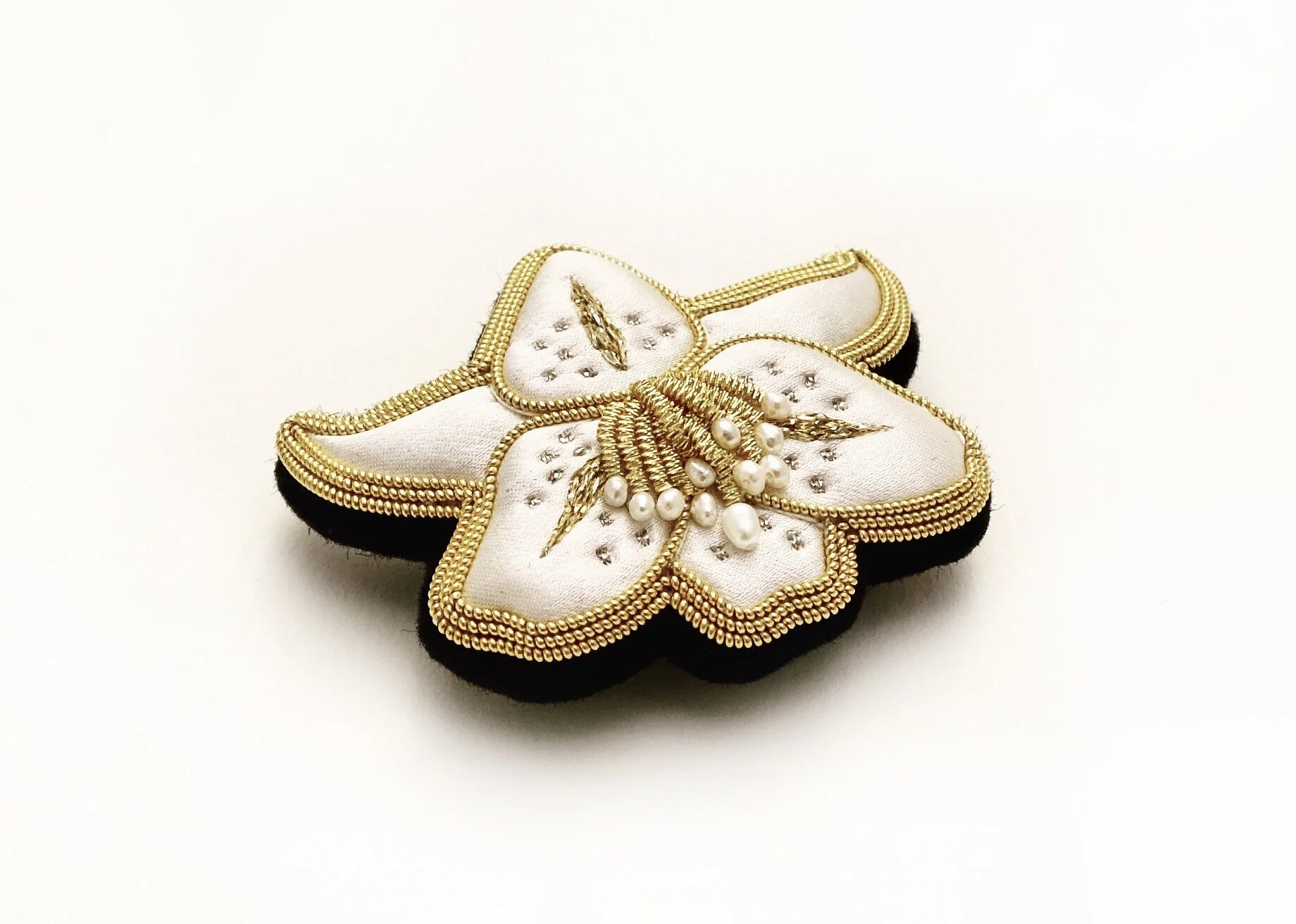 These hand embroidered silk & gold brooches are each a uniquely made and completely wearable work of art.